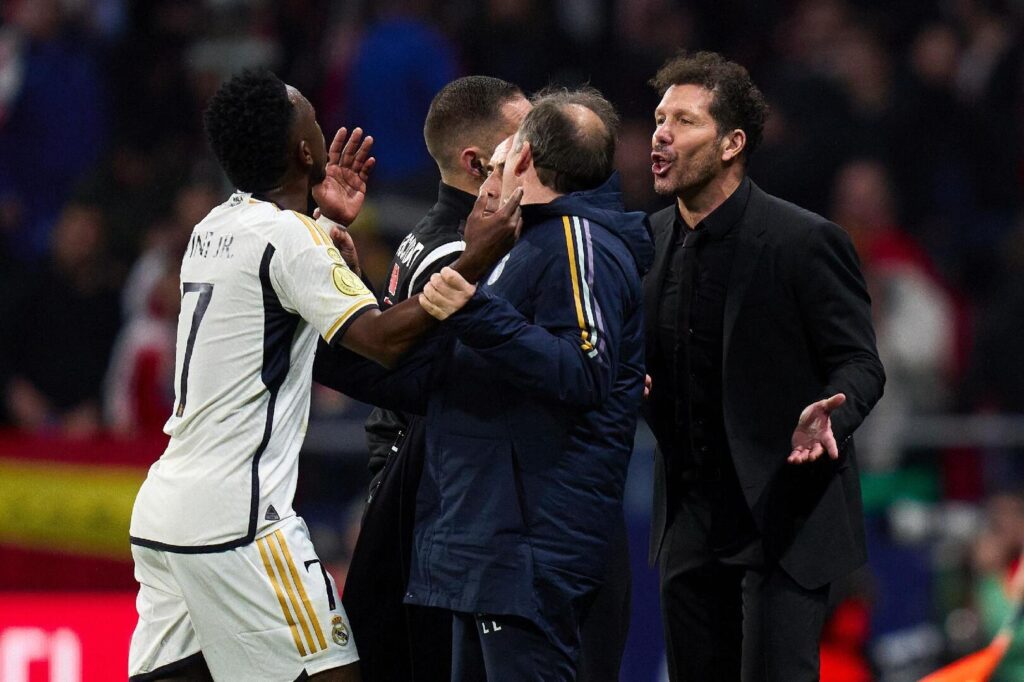 والتقطت الكاميرات المدرب الأرجنتيني وهو يستفز جناح ريال مدريد مرارا طوال المباراة وتردد أنه قال له “فلورنتينو سيطردك تذكر ما أقوله لك” في إشارة للتك ت حول مستقبل فينيسيوس ومفاوضاته مع ريال مدريد مع اقتراب نهاية عقده الحالي.