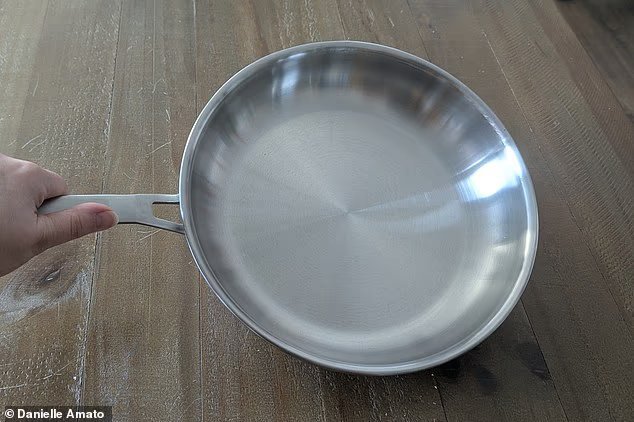 Danielle testing stainless steel and non-stick pans