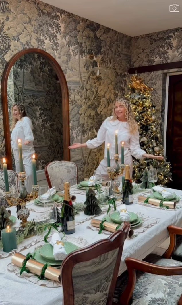 TV personality Amanda Holden turned her Christmas table into a golden spectacle – complete with a glitter swan ornament that towered over the centrepiece. Instead of typically red or green crackers, she opted for black festive decorations and brought out the big baubles for her Yuletide feast.