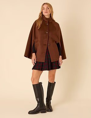 ‘Style your cape with a very simple tailored, fluid trouser to keep an ethereal look to your whole outfit. To keep your look chic, keep everything in the same colour family, or better yet, the exact same colour,’ explains stylist Martine Alexander.