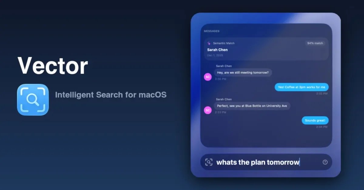 Semantic search for Messages and Files uses an on device model optimized for Apple Silicon, utilizing the Neural Engine – and it actually works. Unlike Messages search which is often unreliable, Vector will show you what you’re looking for.