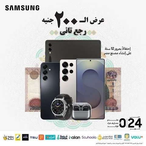 The offer gives customers the opportunity to purchase a selection of smartphones in monthly installments starting from 200 pounds only. This is done in cooperation with a wide range of Samsung partners, including: Valeo, National Bank of Egypt, Commercial International Bank (CIB), Banque Misr, Easy, Halan, Forsa, Aman, Mojo, True, Seven, in addition to Fawry and Tikka.