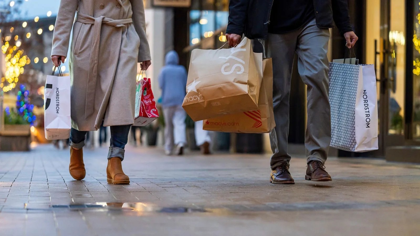 Shoppers carry Macy’s and Nordstrom bags at Broadway Plaza in Walnut Creek, California, US, on Monday, Dec. 16, 2024. The Bureau of Economic Analysis is scheduled to release personal spending figures on December 20.