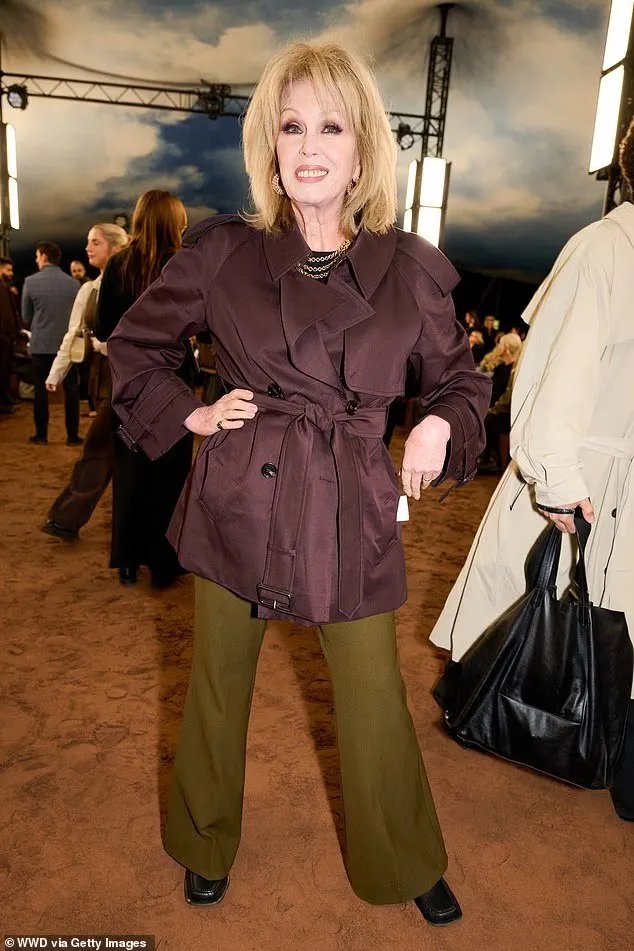 Joanna Lumley in a short brown trench at the Burberry Spring/Summer 2026 show during London Fashion Week in September