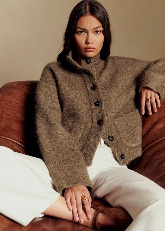 Top of my wish list (and seemingly everybody else’s) is this dark taupe jacket that will easily team with all the whites, browns and blacks in my wardrobe. It’s knitted from a wool-mohair blend and runs slightly oversized, meaning it can be layered over a frilly white blouse throughout autumn, and under a wool coat come winter.